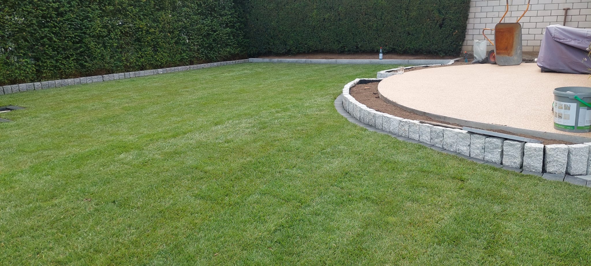 - Bodenbearbeitung: (Fachgerechter Altrasenabtrag & tiefgründige Lockerung)